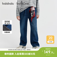 巴拉巴拉童装男童裤子儿童牛仔裤2026秋冬装休闲加绒直筒裤复古潮