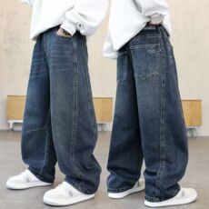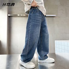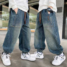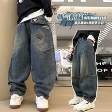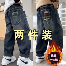 男童裤子春秋款宽松牛仔裤中大童阔腿裤加绒裤子儿童直筒户外长裤