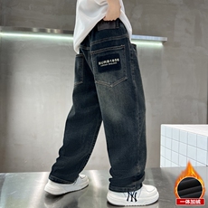 儿童牛仔裤直筒冬季新款加绒加厚薄孩男童裤子中大童长裤休闲春秋