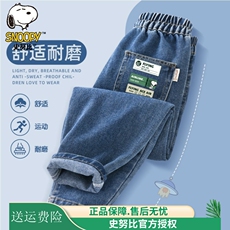 史努比男童裤子春秋冬款2026新款宽松长裤直筒儿童牛仔裤加绒保暖