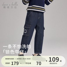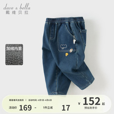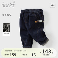 戴维贝拉中大童牛仔长裤2026冬装新款男童奥粒绒加绒休闲直筒裤子