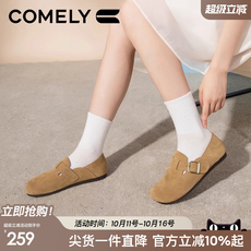 康莉加绒勃肯鞋女 春秋季新款平底一脚蹬懒人豆豆鞋舒适单鞋复古