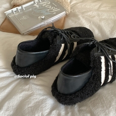 热风冬季新款女士时尚休闲鞋加绒毛毛鞋一脚蹬平底豆豆鞋