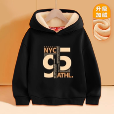 男童卫衣加绒秋冬款2024新款儿童加厚大童连帽上衣男孩童装秋冬款