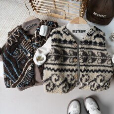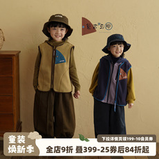 森系复古小童宝宝加绒坎肩马甲 男女童冬季新款保暖原创马夹背心