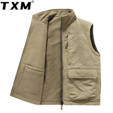 新款中老年马甲男式立领多口袋加绒加厚保暖坎肩背心户外防寒马夹