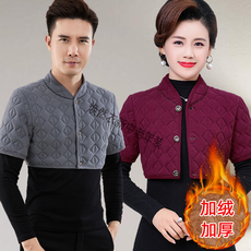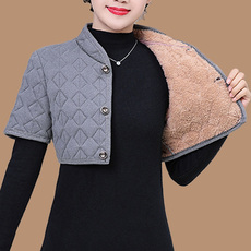 中老年男装加绒加厚护肩坎肩妈妈内搭外穿披肩背心秋季保暖马甲