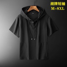 夏装短袖t恤男帽服大码潮牌速干半袖卫衣男宽松加肥加大T恤胖子