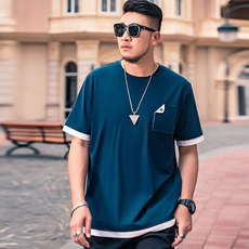 220斤5XL加肥加大码男短袖T恤胖子胖人夏装上衣宽松拼接半截袖潮