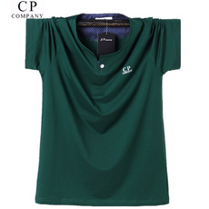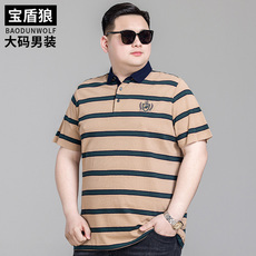 夏装加肥加大码翻领短袖T恤男装半截袖珠地棉宽松商务高级工作服
