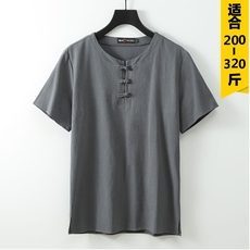 复古盘扣t恤男中国风男装加肥加大短袖胖子大码宽松夏装体恤300斤