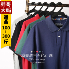 300斤肥仔短袖t恤男加肥加大码翻领上衣宽松刺绣有领半袖夏装胖子