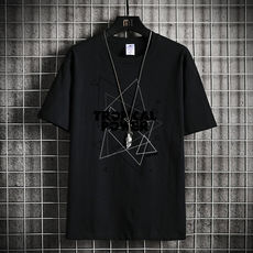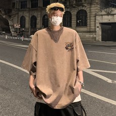 民族风水洗半短袖T恤男加肥加大码国潮牌胖子宽松纯棉夏装高街头
