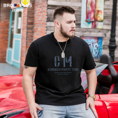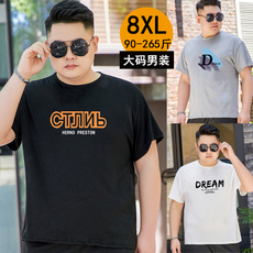 7X肥胖夏装上衣胖子加肥加大码短袖T恤男宽松圆领印花半袖打底衫