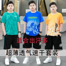 胖男童速干衣运动套装夏装加肥加大小胖子薄款冰丝短袖短裤两件套