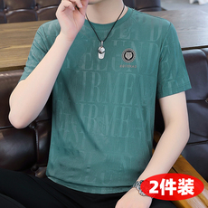 2025夏季新款男士冰丝短袖T恤小衫打底衫加肥加大码夏装速干半袖