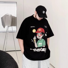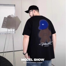 潮牌大码夏季男装胖子宽松休闲卡通印花纯棉加肥加大圆领短袖t恤