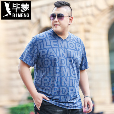 毕蒙加肥加大宽松短袖t恤夏季潮款大码男士冰丝v领体恤肥佬运动衫
