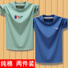 2件】短袖t恤男圆领宽松韩版潮流夏季半袖纯棉加肥加大胖子白体恤