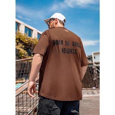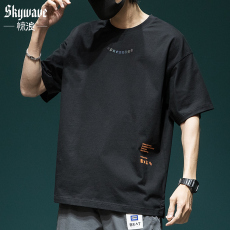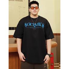 高街潮牌宽松T恤简约字母短袖男加肥加大五分袖纯棉大码男装夏季