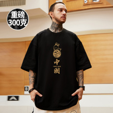 300克重磅短袖男纯棉宽松加肥加大码oversize国潮夏季胖子半袖T恤