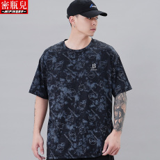 潮牌大码男装胖子加肥加大幻影印花短袖T恤宽松百搭时尚夏季新款