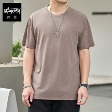 夏季新款男士冰丝短袖t恤宽松圆领汗衫加肥加大码肥佬弹力体恤