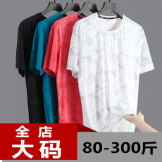 大码300斤冰丝T恤男胖子短袖男装男士宽松加肥加大速干衣服半袖夏