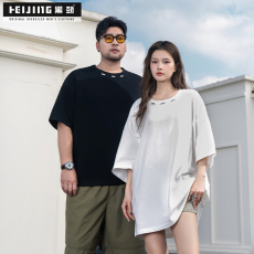 黑劲大码男装夏季圆领短袖加肥加大百搭简约t恤上衣半袖