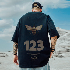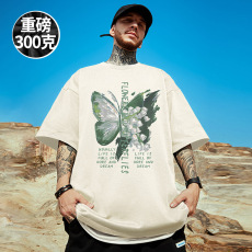 重磅潮牌宽松T恤蝴蝶短袖男加肥加大五分袖纯棉国潮大码男装夏季