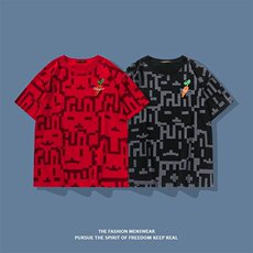 短袖t恤男士夏季纯棉印花半截袖潮休闲宽松加肥加大体恤衫情侣款