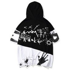 加肥加大号超特大码夏男装潮胖子肥佬350斤宽松带帽半短袖体t恤男