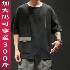 夏季中国风男士短袖t恤宽松加肥加大码潮流胖子纯色潮牌日系半袖