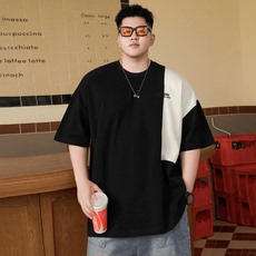 潮牌夏季大码男装插肩袖拼接胖子男宽松休闲加肥加大圆领短袖T恤