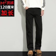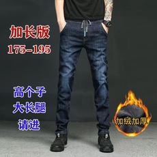 秋冬加绒男士加厚加长牛仔裤弹力宽松高个加长直筒裤子高个子120