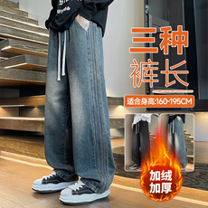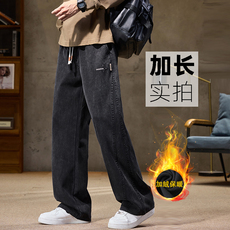 高个子加长裤子男秋冬牛仔裤加绒加厚宽松阔腿裤休闲青少年直筒裤