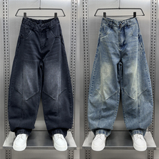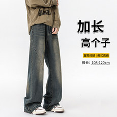 秋冬新款加长版裤子男美式高街丹宁牛仔裤宽松直筒超长男裤120cm