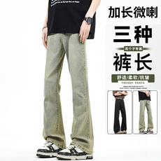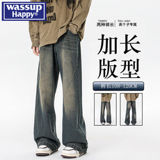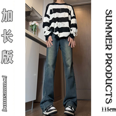 190高个子微喇叭牛仔裤男生加长直筒裤子115cm潮牌宽松复古蓝水洗