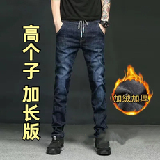 秋冬季加绒加长牛仔裤男直筒修身厚款高个子超长青少年松紧腰男裤
