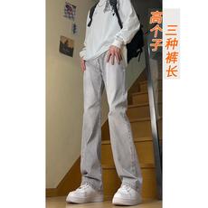 190瘦高个子浅色直筒牛仔裤男款秋冬加绒青少年加长微喇裤子120cm