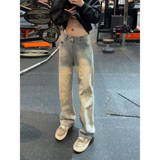 190高个子加长拖地牛仔裤2025春宽松直筒水洗百搭复古潮牌ins长裤
