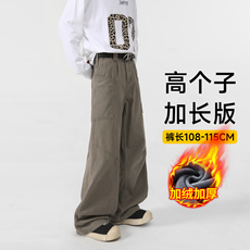 水洗做旧黄泥微喇加绒牛仔裤男加长版高个子115cm美式高街直筒裤