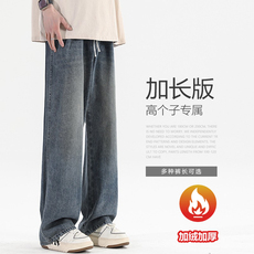 190高个子加长裤子男秋冬款加绒加厚直筒牛仔裤超长版宽松阔腿裤