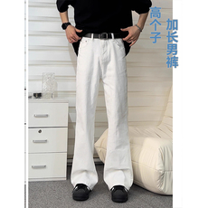 白色高个子加长版牛仔裤男大码宽松直筒弹力胖子加肥加大男装195