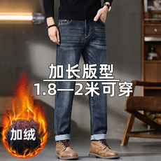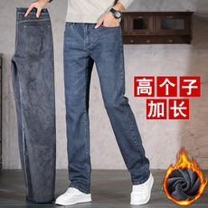 加绒加长牛仔裤男直筒修身秋冬季高腰加厚高个子青年男生超长裤子