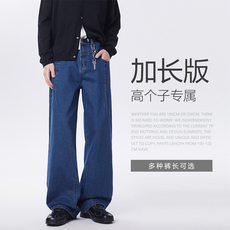 秋冬厚款宽松直筒牛仔裤男士加长版120CM高个子195超长拖地长裤子