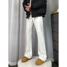 青少年裤子男士秋季厚美式高街微喇牛仔裤男高个子加长版直筒裤潮