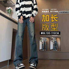 190cm超长美式高街微喇牛仔裤男高个子加长裤115cm修身直筒vibe裤