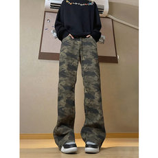 春秋季高个子加长版迷彩男士牛仔裤美式高街宽松直筒阔腿长裤子潮