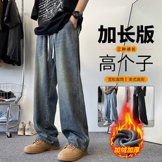 加长版裤子高个子男2025秋冬新款牛仔裤男款青少年美式直筒加绒裤